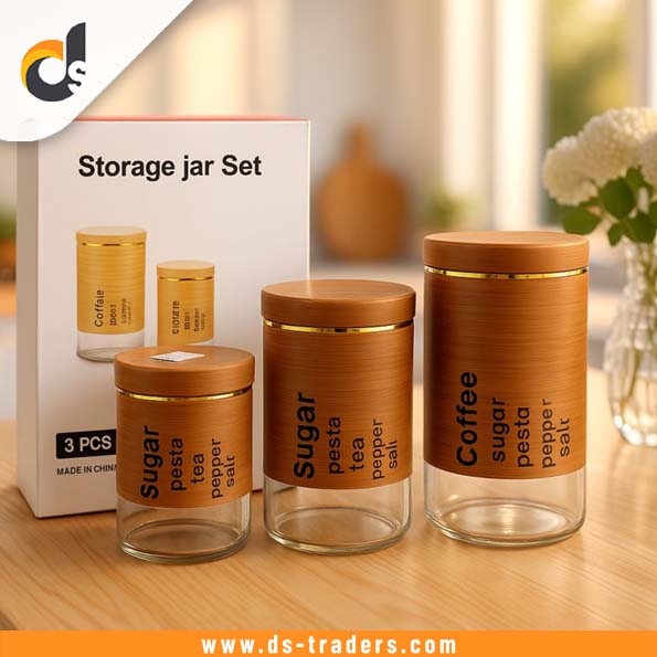 3PCs Airtight Glass Storage Jar Set with Wooden Lid