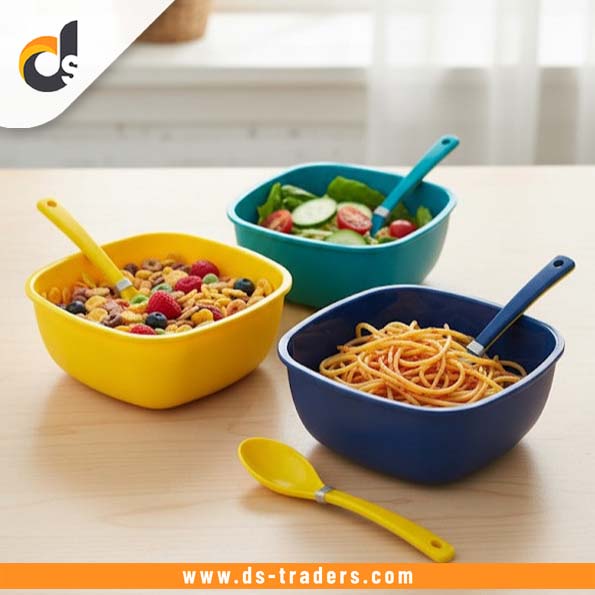Serve in style with this 3-piece set of high-quality plastic square bowls with matching spoons. Lightweight yet durable, they are perfect for enjoying soups, desserts, snacks, or cereals at home, picnics, or parties.