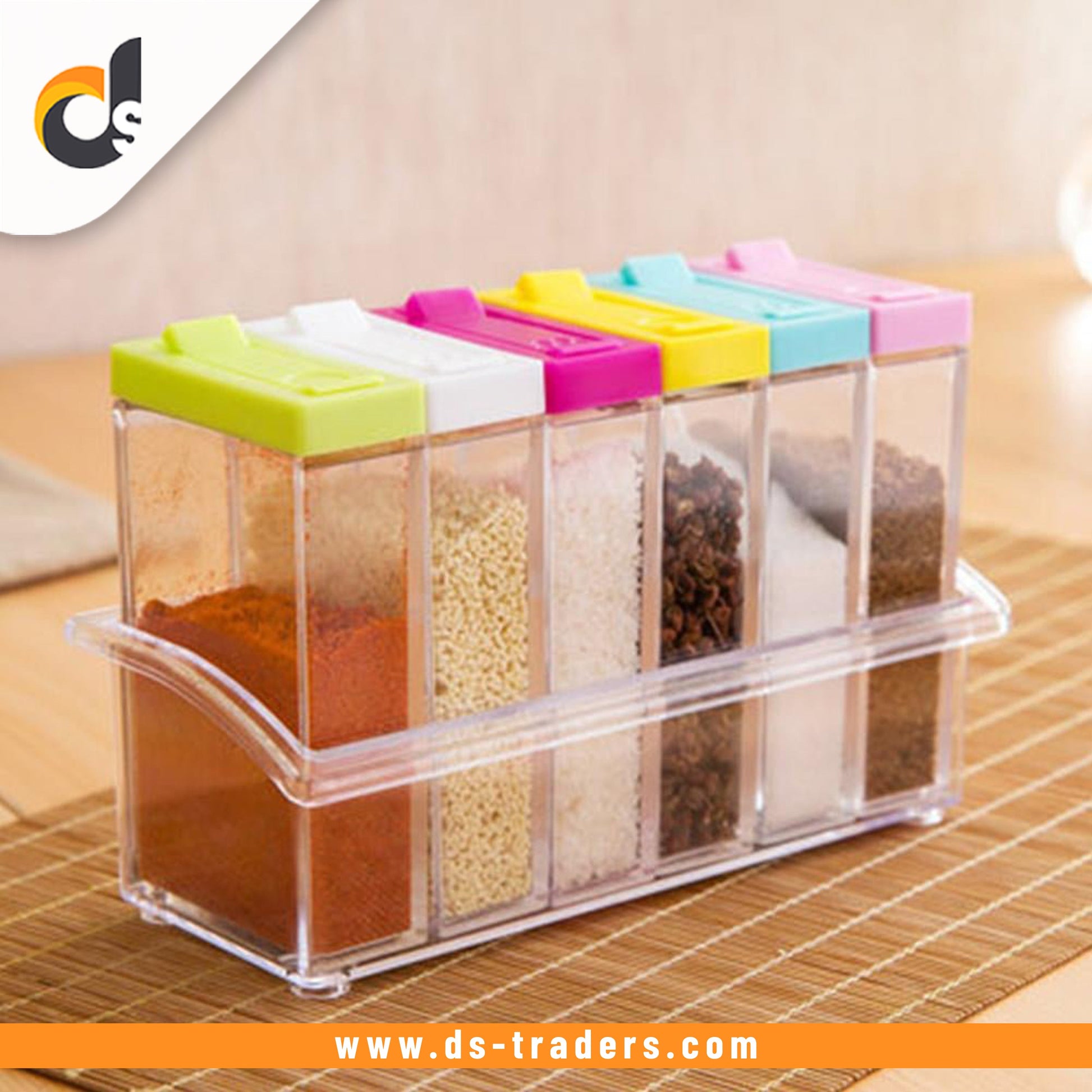 6Pcs Spice Jar Set Home Storage Container with Tray Rack.